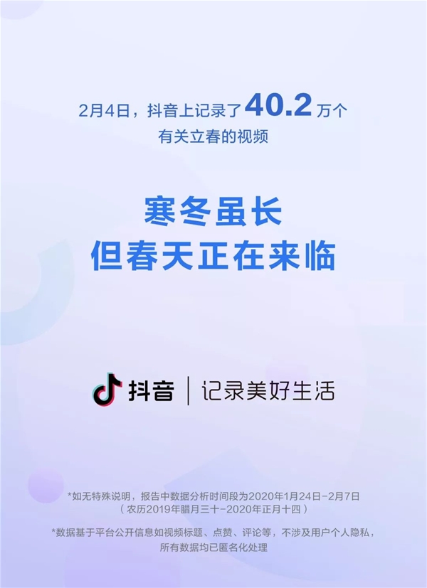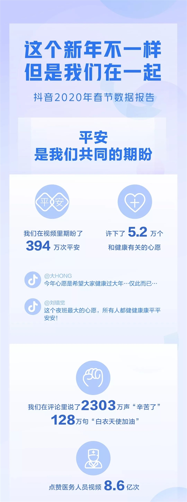 | 抖音2020年春節(jié)數(shù)據(jù)報告:期盼了394萬次平安,留下2303萬句辛苦了 |