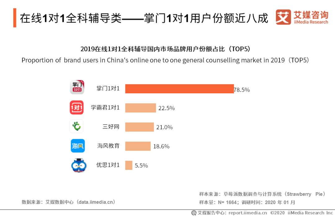 在線1對1全科輔導類——掌門1對1用戶份額近八成 iiMedia Research(艾媒咨詢)數(shù)據(jù)顯示,在線1對1全科輔導類用戶份額占比調(diào)查中,78.5%用戶偏好于選擇掌門教育旗下品牌掌門1對1。艾媒咨詢分析師認為,K12在線1對1全科輔導類行業(yè)格局基本形成,掌門1對1在在線1對1全科輔導領域上占據(jù)領先優(yōu)勢,未來將進一步優(yōu)化盈利模型。