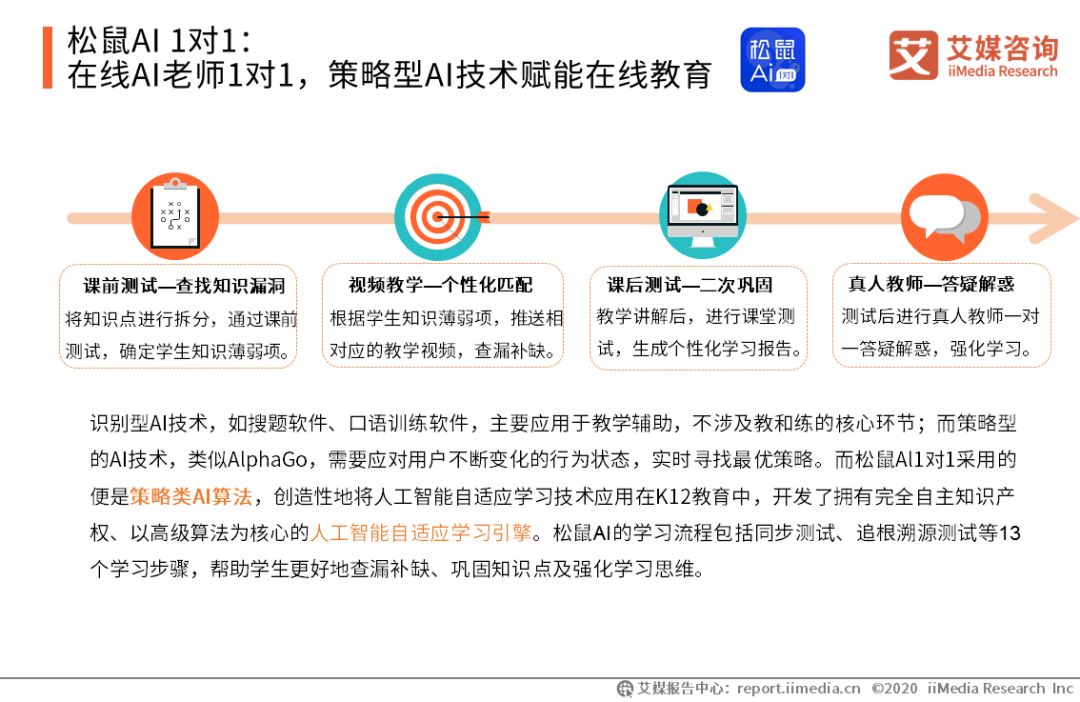 松鼠AI 1對1:在線AI老師1對1,策略型AI技術賦能在線教育 松鼠AI 1對1成立于2014年,是國內(nèi)率先將人工智能自適應學習技術應用在K12教育領域的人工智能公司。松鼠AI智適應學習系統(tǒng)可以將知識點進行拆分,根據(jù)學生課前測試發(fā)現(xiàn)知識漏洞,為每位學生推送特定的知識點講解視頻。