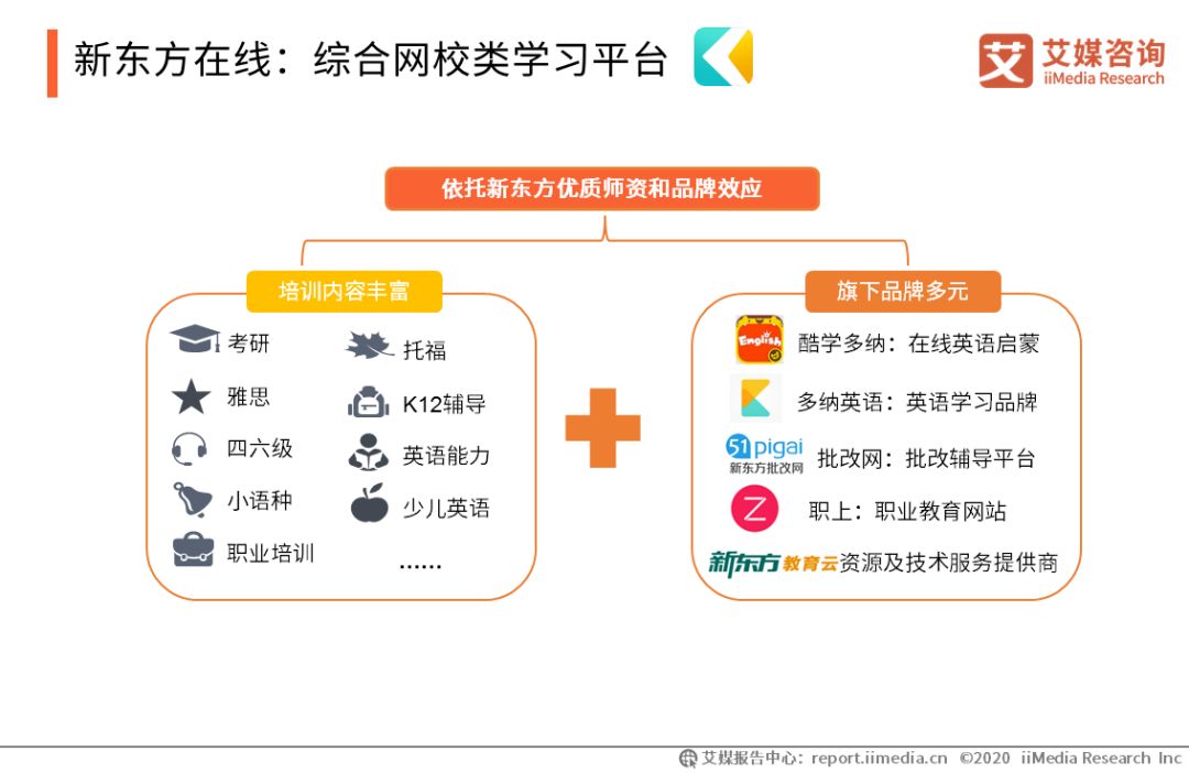 新東方在線:綜合網(wǎng)校類學習平臺 新東方在線是新東方集團全資創(chuàng)辦的綜合網(wǎng)絡教育培訓機構,依托新東方強大師資力量與教學資源,為用戶提供出國留學、考研培訓、英語培訓和職業(yè)培訓等教育服務。