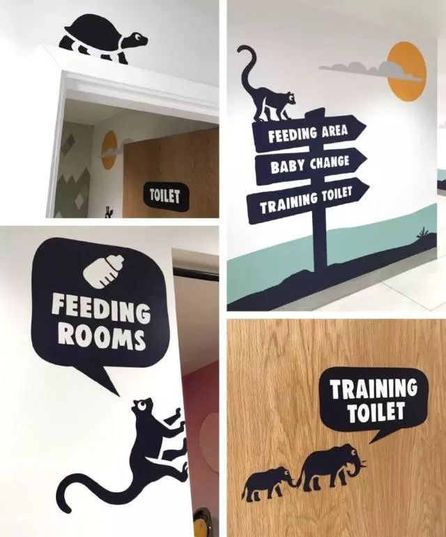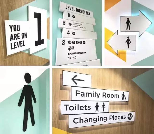 三、系統(tǒng)性與差異性 1、功能使用 在室內(nèi)游樂場、公園等公共場所往往有很多小孩, 考慮到小孩認(rèn)字程度的差異, 這里的指示設(shè)計(jì)就要多做趣味化的考量。 優(yōu)秀案例 英國Exchange ilford購物中心 Exchange Ilford購物中心位于英國倫敦伊爾福德,擁有便利的公共交通和一系列基礎(chǔ)設(shè)施,近日其大廳、衛(wèi)生間和家庭活動(dòng)室進(jìn)行了導(dǎo)視系統(tǒng)設(shè)計(jì)。