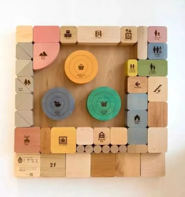 基于項(xiàng)目里的所有游樂設(shè)施都是用木頭制成,導(dǎo)視系統(tǒng)提取了木頭元素,設(shè)計(jì)了立體拼貼的導(dǎo)視板,每個(gè)獨(dú)立的木塊都代表不同的區(qū)域,采用豐富、溫和的色彩區(qū)分不同區(qū)域,與室內(nèi)環(huán)境相統(tǒng)一且具有趣味性。