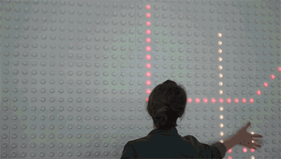 Chapter 1 波動墻裝置 其實在我們的生活中,已經(jīng)出現(xiàn)了很多有趣的公共設(shè)施設(shè)計,比如這種人機互動可以實時呈現(xiàn)的。