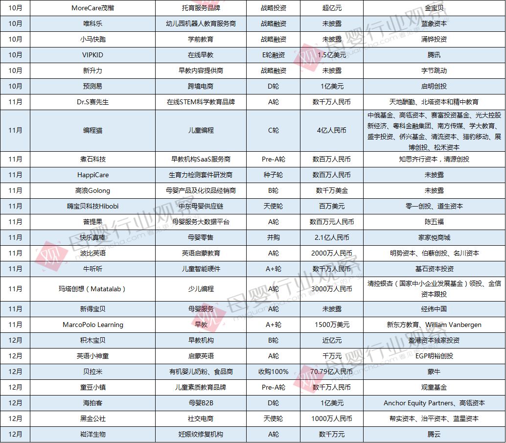 | 2019年母嬰行業(yè)投融資報告發(fā)布:金額與上年持平,投融資亮點卻大有不同! |