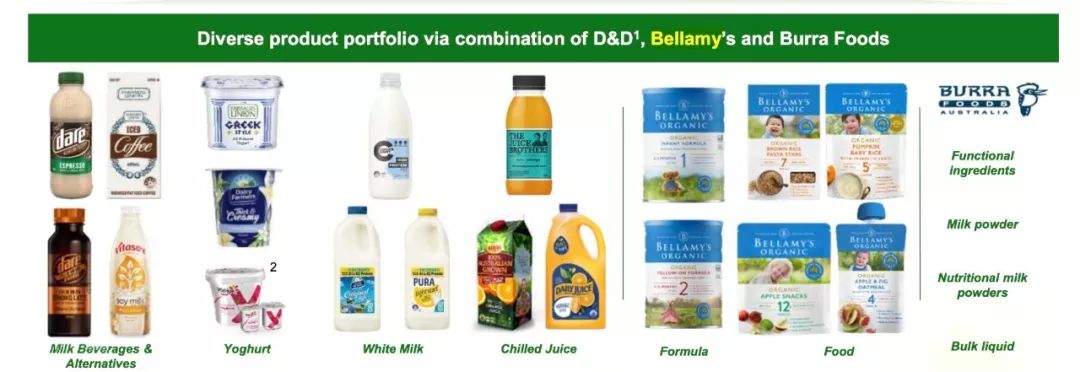 他還補(bǔ)充道,總體來(lái)看,蒙牛的大部分牛奶供應(yīng)是來(lái)自本土的,只有小部分是進(jìn)口。“如果你對(duì)比本土牛奶和進(jìn)口牛奶的質(zhì)量,他們基本上是一致的,甚至我們的一些本土生產(chǎn)的牛奶,比如有機(jī)牛奶,質(zhì)量還要更好。”盧敏放說(shuō)。 上述趨勢(shì)也說(shuō)明了蒙牛收購(gòu)Lion-Dairy& Drinks背后的邏輯。在此前提供給分析師的相關(guān)資料中,蒙牛方面指出,通過(guò)收購(gòu)Lion Dairy & Drinks,公司可以獲得澳大利亞的原奶,因外方擁有280位長(zhǎng)期合作的奶農(nóng),可提供8.25億升的穩(wěn)定原奶供應(yīng)。 此外,蒙牛也把2016年間接在該國(guó)收購(gòu)的Burra Foods,以及新收購(gòu)的貝拉米、Lion三者一并考慮,認(rèn)為其產(chǎn)品系列(如下圖)可以滿足東南亞、中國(guó)市場(chǎng)的需求。隨著蒙牛整合供應(yīng)鏈,三者將可能發(fā)揮“可觀”的協(xié)同效應(yīng),包括共享分銷(xiāo)網(wǎng)絡(luò)和有機(jī)會(huì)共享基礎(chǔ)設(shè)施和后勤系統(tǒng)等。