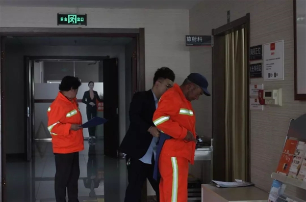 威海紫光工作人員及體檢中心工作人員引導(dǎo)環(huán)衛(wèi)工人按序檢查,隨時關(guān)注環(huán)衛(wèi)工人的身體是否有不適,以便及時給予幫助。