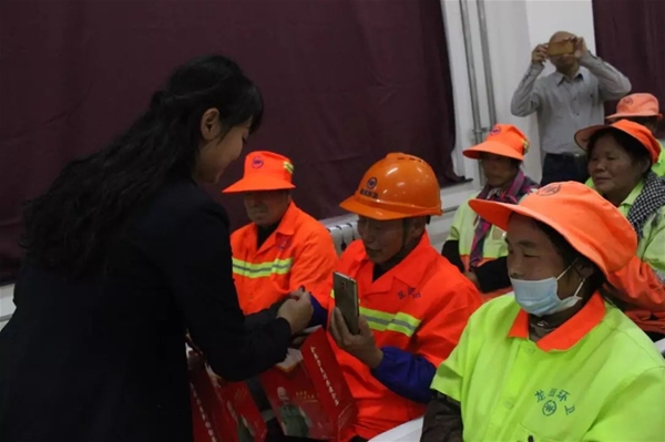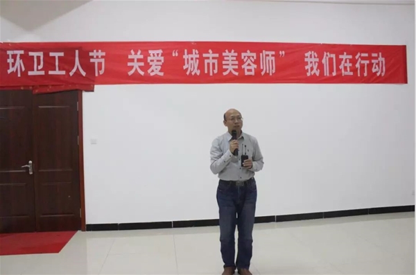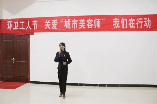 威海紫光文宣部主任宋親臣女士上臺致辭發(fā)言,闡述了本次活動的宗旨,并對一直辛勤勞動在環(huán)衛(wèi)一線的工作者們表達(dá)衷心的感謝和送去節(jié)日的祝福!