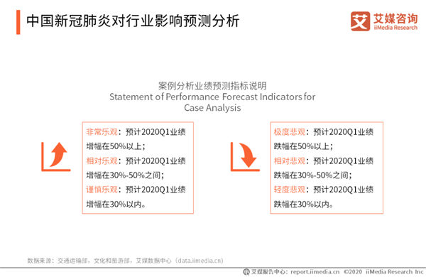 中國新冠肺炎對行業(yè)影響預(yù)測分析 非典期間的經(jīng)驗表明,疫情對交運行業(yè)沖擊較為持久,如 2003 年 6 月初非典疫情已基本得到控制,但 7-8 月國內(nèi)客運量增速仍持續(xù)為負(fù),且全年交通運輸、倉儲和郵政業(yè)GDP 增速較上年降低 1 個百分點。同時,2003 年非典疫情導(dǎo)致全年旅游收入同比下降 11.2%。鑒于2020年新冠肺炎疫情嚴(yán)重程度已經(jīng)超過2003年非典疫情,艾媒咨詢分析師認(rèn)為,新冠疫情對2020Q1行業(yè)經(jīng)濟將產(chǎn)生巨大影響,故設(shè)立六檔預(yù)測區(qū)間,僅做參考。