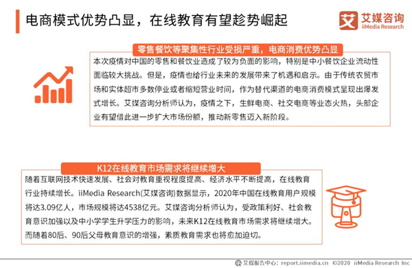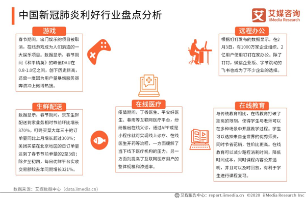 以上內(nèi)容節(jié)選自艾媒研究院發(fā)布的《2020中國新冠肺炎疫情正/負(fù)影響行業(yè)及典型企業(yè)業(yè)績影響分析報告》