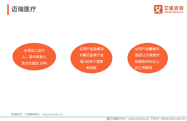 邁瑞醫(yī)療 邁瑞總部位于深圳,主營業(yè)務(wù)覆蓋生命信息與支持、體外診斷、醫(yī)學(xué)影像三大領(lǐng)域,通過前沿技術(shù)創(chuàng)新,提供更完善的產(chǎn)品解決方案,幫助世界改善醫(yī)療條件、提高診療效率。艾媒咨詢分析師認(rèn)為,邁瑞持續(xù)保持較高的研發(fā)投入,在研產(chǎn)線豐富,筑造強大的專利護城河。