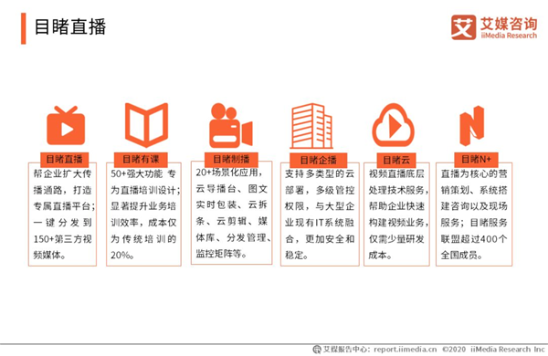 目睹直播 目睹Mudu.tv隸屬于杭州雅顧科技有限公司,提供企業(yè)級視頻云平臺服務(wù)。產(chǎn)品被廣泛應(yīng)用于品牌推廣、產(chǎn)品營銷、企業(yè)會議、政務(wù)直播、綜藝直播、新聞報道等場景。艾媒咨詢分析師認(rèn)為,疫情當(dāng)下,各協(xié)同辦公產(chǎn)品都迅速通過免費開放服務(wù)、升級原有功能以及針對疫情開發(fā)新的服務(wù)功能等方式,來對接不斷增長的需求,在幫助企業(yè)“戰(zhàn)疫”的同時,推動在線辦公得到較快的發(fā)展,短期用戶數(shù)量及使用時長有望實現(xiàn)爆發(fā)增長,但持續(xù)性有待觀察,因此給予“相對樂觀”評級。