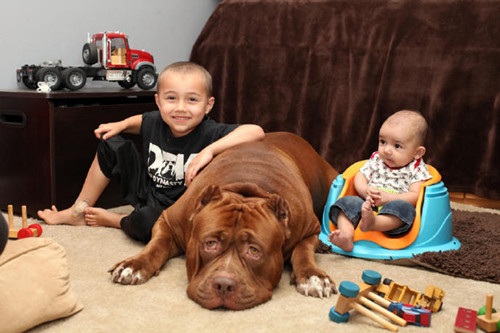 在美國(guó),一對(duì)夫婦飼養(yǎng)了一只據(jù)說(shuō)全球最大的斗牛犬“浩克”。