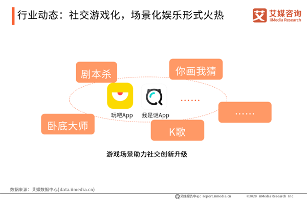 行業(yè)動(dòng)態(tài):社交游戲化,場(chǎng)景化娛樂(lè)形式火熱 伴隨移動(dòng)社交用戶的迭代,以95、00后為主的年輕新世代成為中國(guó)移動(dòng)社交市場(chǎng)的主力軍。這部分年輕用戶更青睞于輕松、趣味社交形式,移動(dòng)社交廠商也開(kāi)始尋求泛娛樂(lè)類的社交產(chǎn)品,其中包括玩吧App 、我是謎App等多款泛娛樂(lè)類社交產(chǎn)品。如今娛樂(lè)游戲與社交更深度融合,除游戲社交化以外,社交也呈現(xiàn)出游戲化的趨勢(shì)。艾媒咨詢分析師認(rèn)為,社交游戲化,推動(dòng)社交場(chǎng)景娛樂(lè)化,通過(guò)小游戲、語(yǔ)音互動(dòng)等方式為用戶創(chuàng)造豐富和封閉的娛樂(lè)場(chǎng)景,釋放社交壓力的同時(shí)增加趣味性和沉浸感,更契合當(dāng)下95、00后的新型社交需求。