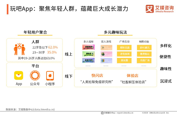 玩吧App:聚焦年輕人群,蘊(yùn)藏巨大成長(zhǎng)潛力 主張“讓社交更輕松”的玩吧App,能在社交細(xì)分領(lǐng)域突出重圍,很大程度在于其搭建的豐富的娛樂(lè)社交場(chǎng)景與直觀便捷的語(yǔ)音交流方式契合90、00后年輕群體的開(kāi)放性社交需求。玩吧App設(shè)置了多樣游戲模式以及多種社區(qū)廣場(chǎng)活動(dòng),并增添即時(shí)通訊、邀請(qǐng)陪玩等功能,幫助用戶邊玩邊聊、輕松社交。此外,玩吧App還同步線下娛樂(lè)社交場(chǎng)景,通過(guò)開(kāi)設(shè)快閃店、開(kāi)展社交話題活動(dòng)等,將線上社交拓展到線下。艾媒咨詢分析師認(rèn)為,玩吧App精準(zhǔn)聚焦年輕用戶群的需求,并不斷優(yōu)化用戶社交體驗(yàn)及拓展社交場(chǎng)景,在泛娛樂(lè)社交領(lǐng)域具有巨大的成長(zhǎng)潛力。