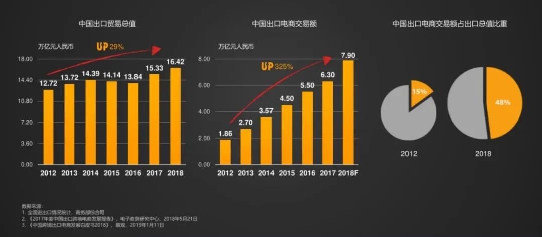 3月19日,CTJPA精英學院在線直播培訓第四期,中玩協(xié)邀請亞馬遜大客戶招商運營經(jīng)理分享了主題為《2020海外線上玩具和嬰童用品市場洞察》的在線課程。主講嘉賓講述了中國跨境電商發(fā)展前景、三大主要海外市場消費情況及玩具和嬰童用品海外市場分析等幾個方面內(nèi)容。 01 中國跨境電商發(fā)展迅猛,前景廣闊 中國跨境電商連續(xù)多年快速穩(wěn)健增長,新外貿(mào)業(yè)態(tài)初步形成 2012年到2018年,中國出口貿(mào)易總值從12.72萬億元人民幣增長到16.42萬億元人民幣,增長29%,而中國出口電商交易額從1.86萬億元人民幣增長到7.9萬億元人民幣,增長幅度達325%。中國出口電商交易額占出口總值的比重也從2012年的15%增長到2018年的48%。