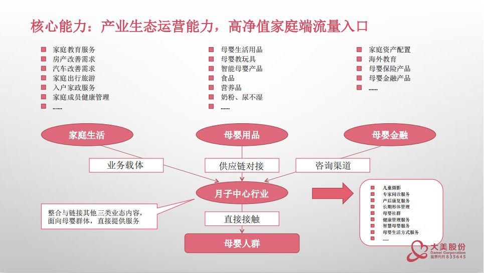 “我們月子會所絕對比很多餐廳影院KTV損失更大,疫情期間全封閉沒客流,不但沒收入之前簽的客人還都來退款,還不能關門,總不能把在住月子期的客人趕出去吧,只要有有一個住客,就要全體系運作。”一個月子會所老板在朋友圈無奈的說道,事實上,這個春節(jié)讓多數(shù)月子會所都受到了不同程度的影響。對于從業(yè)者來說,一方面,要想辦法彌補短期內的損失,同時從長遠看,月子會所該突破瓶頸提升抗風險能力與持續(xù)增長勢能,也是需要去深思的問題。 在近期母嬰行業(yè)觀察系列線上實戰(zhàn)大課中,大美股份龍飛就月子中心的服務業(yè)態(tài)特征與運營增長之道進行了干貨直播: 根據(jù)不完全統(tǒng)計全國有12000家月子中心,在發(fā)達的城市,占了70%左右的月子會所。在月子會所中分為幾種業(yè)態(tài),大部分是加盟模式,也就是直營數(shù)量不多,但是有非常多的加盟商;大美股份采用直營店的模式,截止目前共有20家直營月子中心,分布在南京、南通、上海等一二線城市。 雖然月子會所發(fā)展比較快,但是有很多需要規(guī)范的地方: 1、沒有直接管理部門進行監(jiān)督,監(jiān)管缺位導致行業(yè)魚龍混雜; 2、月子會所行業(yè)缺少國家行業(yè)標準,導致同行服務專業(yè)水準參差不齊; 3、行業(yè)天花板明顯,門店數(shù)、床位數(shù)限制了企業(yè)發(fā)展上限。 月子中心行業(yè)的核心能力 一、孕-康-護-養(yǎng)-健一體化的學科化專業(yè)能力 當下中國已經開始在健康版塊加大力度,月子中心其實是健康版塊下的細分。