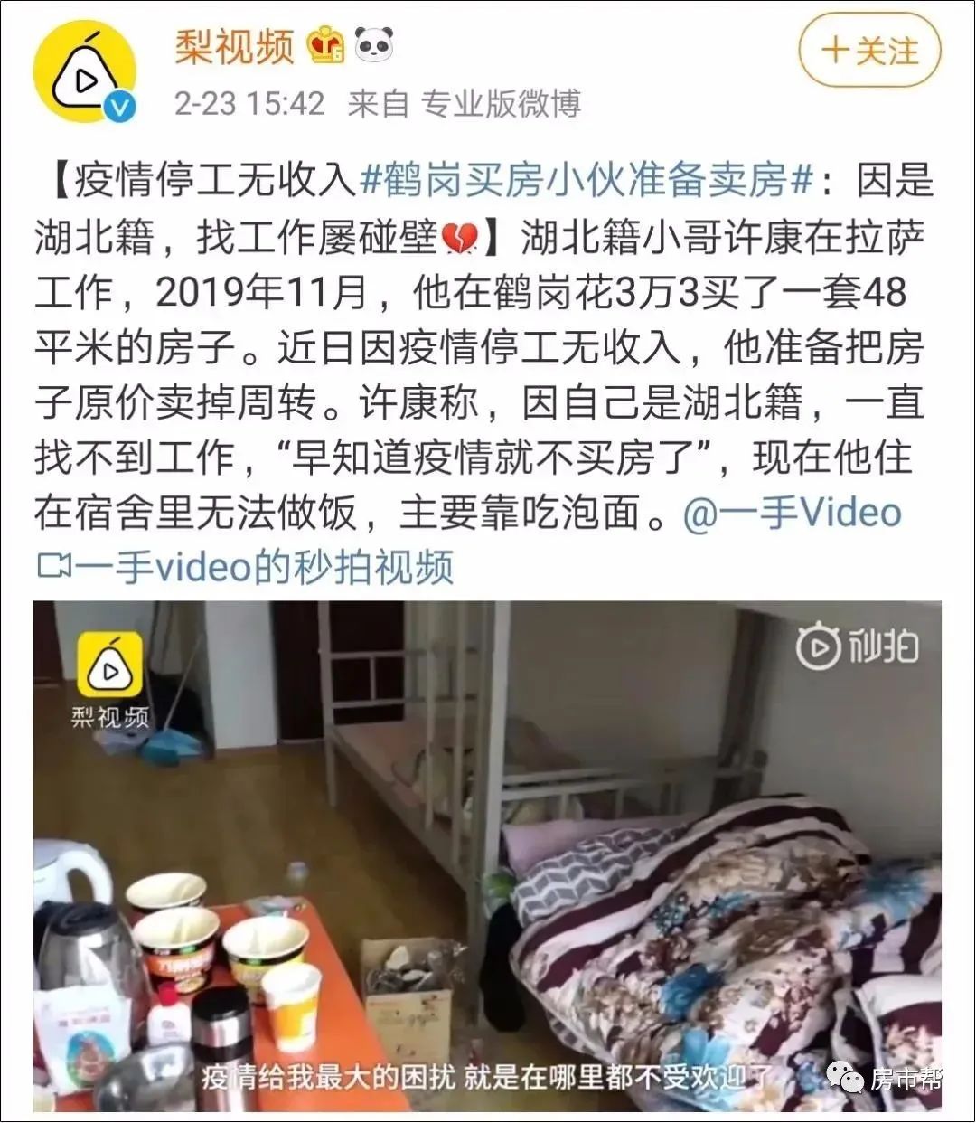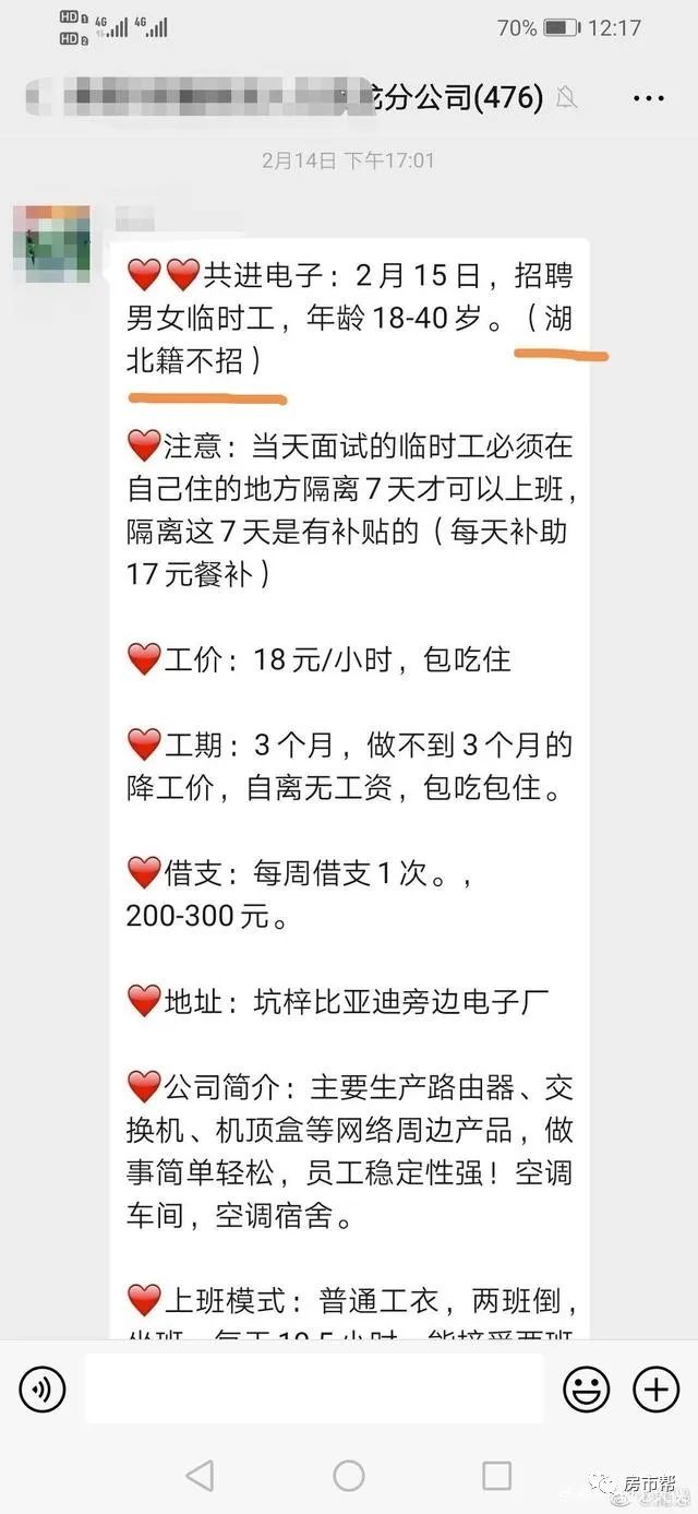 昨天微博上有一則熱搜是 #湖北男子隔離21天后復(fù)工被趕出#。 2月8日,在湖北家中隔離15天后。