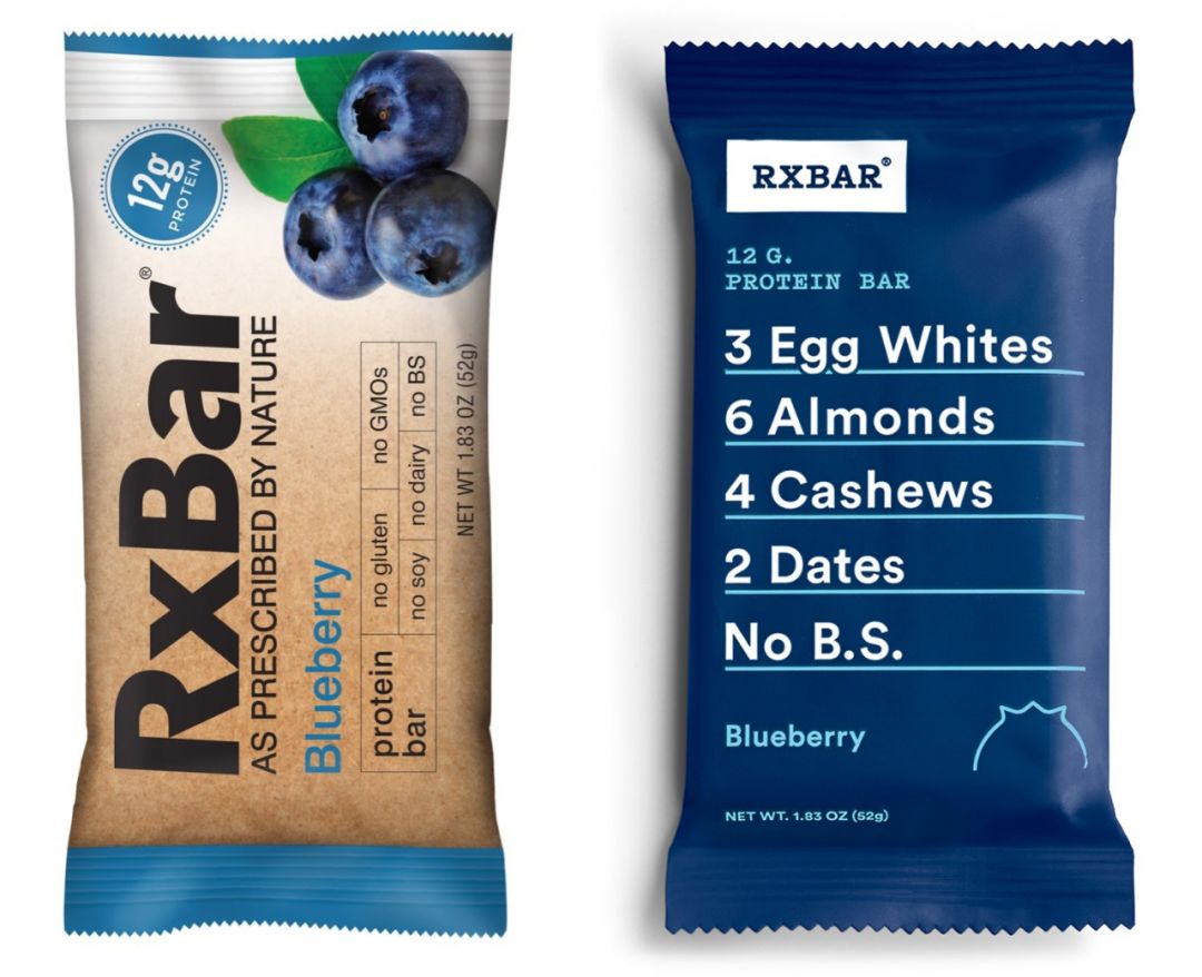 圖片來源:RXBAR官網(wǎng) 原先,RXBAR 的包裝設(shè)計中規(guī)中矩: 新鮮原料圖片配上巨大的logo 以及產(chǎn)品說明。后來營銷公司在為其重新定位時發(fā)現(xiàn),消費者愿意購買的主要原因是 RXBAR 的天然健康成分,而不是品牌名聲。因此創(chuàng)始人決定著重放大「NO B.S.(無添加,無多余成分)」的品牌承諾,同時將 RXBAR 標(biāo)志縮小 60%。 比起巨大的logo,巨大的藍(lán)莓或者“幫助你成為猛男”這樣的標(biāo)語,“3 個蛋白+6 個杏仁+4 個腰果+2 個棗”對現(xiàn)在的消費者來說更有吸引力。 新包裝沒有激發(fā)食欲的圖片,也沒有產(chǎn)品功效說明,只是簡單地羅列出材料、用量、口味、和保質(zhì)期。CEO Peter Rahal 解釋道:「當(dāng)時我們的想法很簡單:只要誠實地告訴顧客,蛋白棒里有什么、沒什么就好了,其余信息一概不用。」