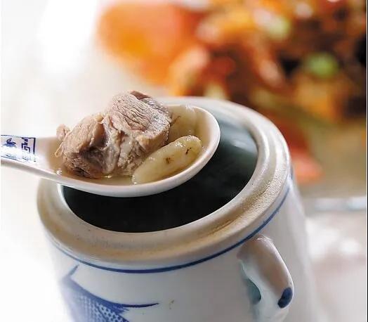 制法:豬脊骨飛水去肉腥,與淮山、枸杞子同置于砂鍋內(nèi),加適量清水煮湯,沸后轉(zhuǎn)慢火煮2小時(shí),加少許鹽后即可食用。