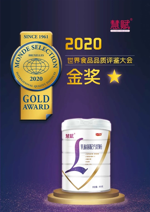 | 喜賀!宜品慧賦乳酸菌奶粉榮獲2020世界食品品質(zhì)評(píng)鑒金獎(jiǎng) |
