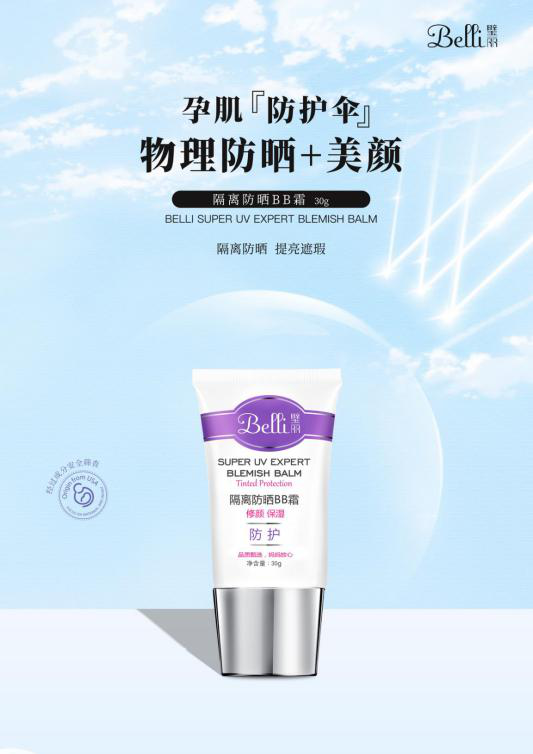 Belli作為專業(yè)孕期護(hù)膚品牌,研制Belli隔離防曬bb霜初衷,就是為了解決孕期女性懷孕后肌膚干燥黯啞,孕期斑等問題。Belli隔離防曬bb霜采用氧化鋅和二氧化鈦配方,使肌膚呈現(xiàn)勻凈透亮的裸妝肌。