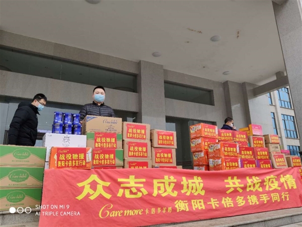 2019年末,我國(guó)從湖北開(kāi)始全國(guó)范圍內(nèi)爆發(fā)了新冠肺炎疫情,很快蔓延至全國(guó)各地,全國(guó)人民陷入了一場(chǎng)“戰(zhàn)斗”。在新冠病毒肆虐祖國(guó)大地時(shí),全國(guó)人民自上而下響應(yīng)國(guó)家號(hào)召,不管是一線醫(yī)務(wù)工作者還是普通老百姓,不管是國(guó)內(nèi)民眾還是海外華人都在全力對(duì)抗疫情。病毒無(wú)情,人間有愛(ài),一個(gè)個(gè)暖心的善舉,在全民的戰(zhàn)“疫”中閃爍著耀眼的光芒。 ▼共抗疫情 勇?lián)姑?/strong> 卡倍多羊奶粉衡陽(yáng)大區(qū)在行動(dòng) 卡倍多羊奶粉作為全國(guó)知名的羊奶粉品牌,在疫情面前,更是凝心聚力,至上而下參與其中,以實(shí)際行動(dòng)勇?lián)鐣?huì)責(zé)任,并肩共闖難關(guān)。 3月6號(hào)上午9點(diǎn),以卡倍多衡陽(yáng)大區(qū)周春云周總、李香梅李總、卡倍多湖南市場(chǎng)對(duì)接負(fù)責(zé)人陳啟榮以及衡東市場(chǎng)負(fù)責(zé)人曹杰曹總、祁東市場(chǎng)負(fù)責(zé)人肖斌肖總為代表,向湖北疫區(qū)捐贈(zèng)羊奶、羊初乳、酒精、84消毒液、礦泉水等總計(jì)價(jià)值8萬(wàn)元的物資,蒸湘區(qū)區(qū)長(zhǎng)袁谷平親自做了接待。