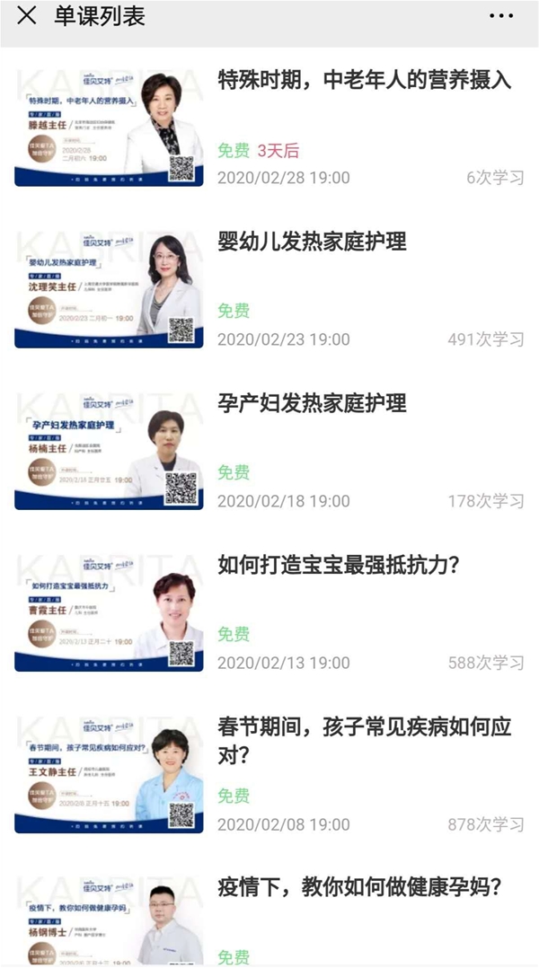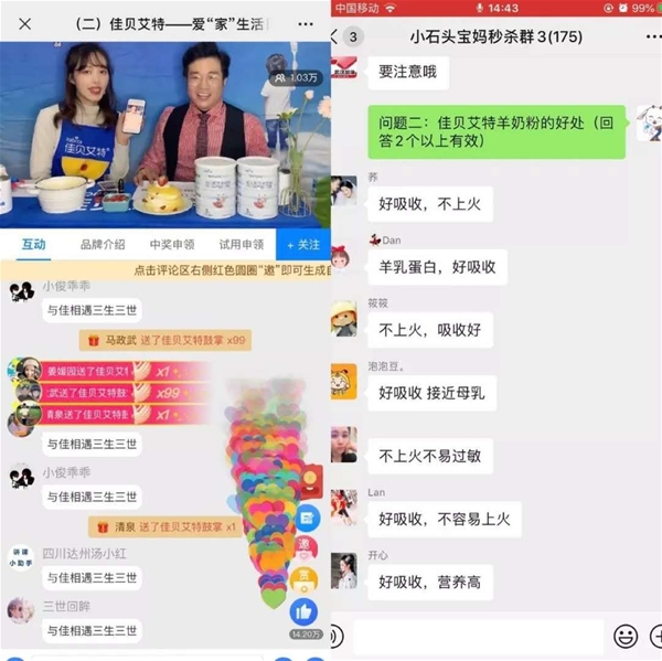 同時,佳貝艾特也充分利用自己的公眾號宣傳矩陣,反饋前線與后方各類信息,幫扶渠道穩(wěn)住信心。如公眾號“佳貝艾特一家人”,每日更新佳貝艾特前線員工動態(tài),及時幫助門店、代理商協(xié)調解決斷貨問題;再如“佳貝艾特羊奶粉”開辟了疫情專區(qū),線上鏈接公益課堂、專家在線、專家視頻、知識科普以及聯(lián)系客服等欄目。 線上直播是佳貝艾特在疫情期發(fā)力的重點。佳貝艾特總部會打造直播的模板,各省區(qū)通過學習,自行開展直播活動。