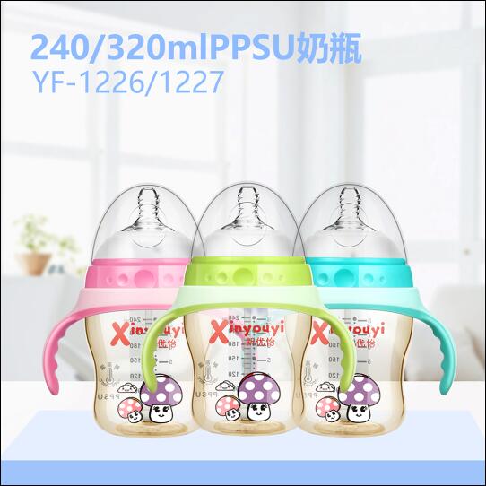 新優(yōu)怡嬰兒PPSU奶瓶系列特點 新優(yōu)怡嬰兒PPSU奶瓶采用優(yōu)質(zhì)食品級聚丙烯原料,精制而成不含雙酚A,耐高溫,多次煮沸,消毒不變形。特性:比重低,半透明,光澤度高;成品表面硬度大,耐磨損性,抗氧化性,耐熱溫度達180攝氏度;抗多種有機溶劑和酸堿腐蝕。 新優(yōu)怡嬰兒PP奶瓶系列設計高級防脹氣自動感溫奶瓶,專為新生兒設計,保護bao--bao的健康,我們更專業(yè),媽媽請放心。 |