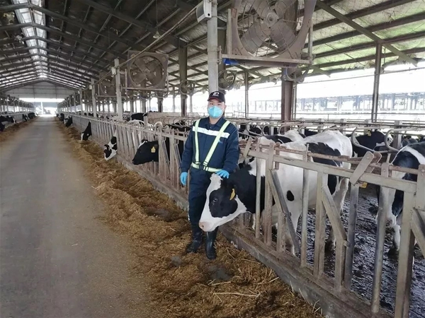 每日,他與繁殖團隊的同事們要對全場2900多頭成乳牛和后備牛進行5次巡查,實時關注牛只情況,產(chǎn)后牛只分泌物是否正常,牛床墊料是否充足舒適等問題,再對場內(nèi)設備設施運行情況及時反饋。