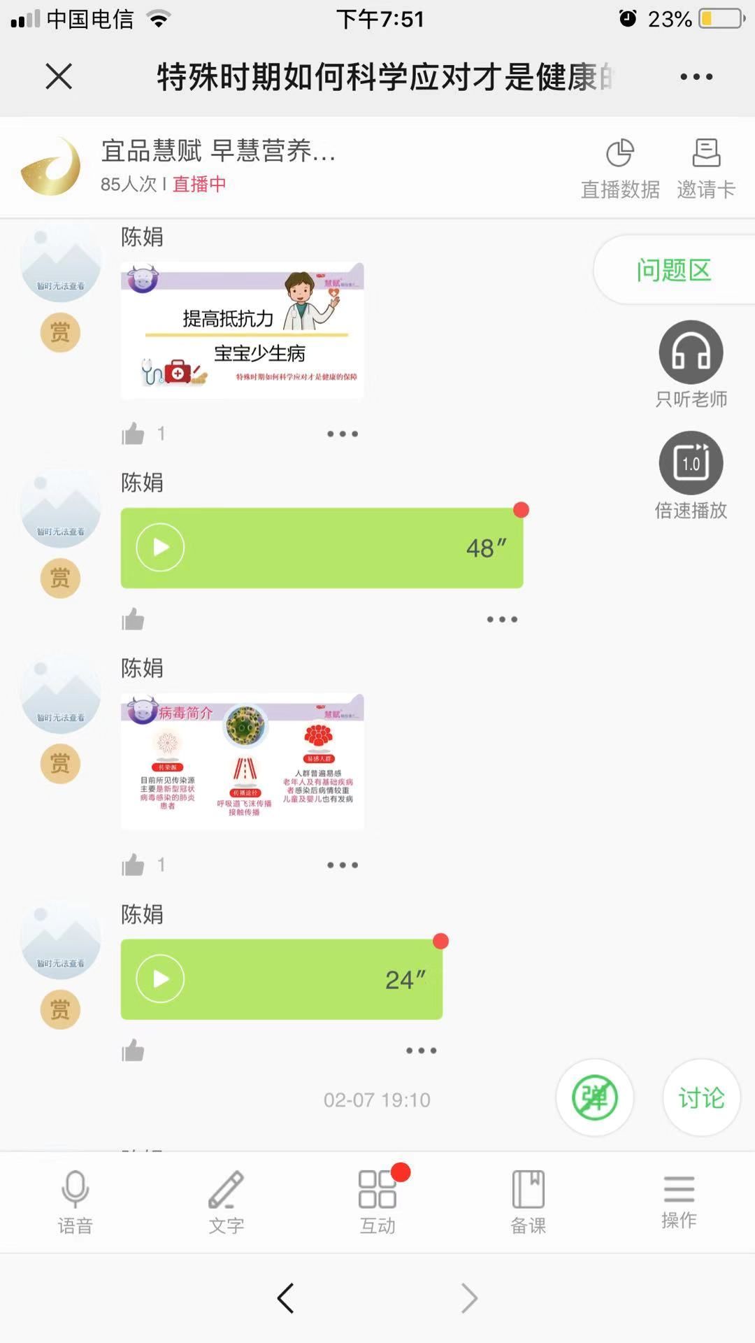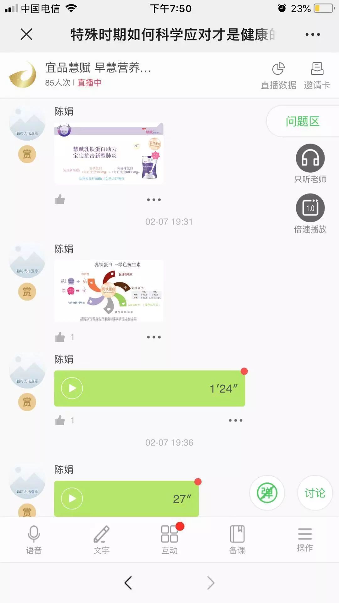 03 在線授課,“喂”愛不打烊 “喂”愛不打烊,慧賦特開通疫情期間母嬰關(guān)愛熱線。并通過直播等形式,在線傳播母嬰知識,分享疫情期間的育兒經(jīng)驗(yàn),讓媽媽們面對疫情不恐慌。
