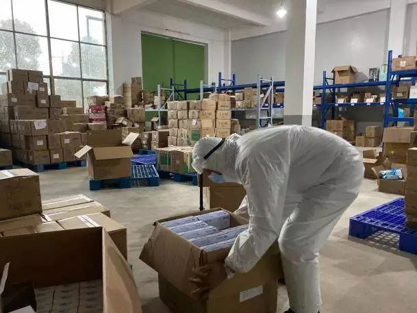 (在倉庫整理防疫物資)