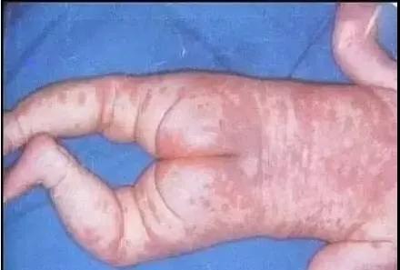 表現(xiàn)為皮膚潮紅,小斑丘疹上溢出淡黃色脂性液體覆蓋在皮疹上,以后結成較厚的黃色痂皮,不易除去,以頭頂及眉際、鼻旁、耳后多見,但是癢感不太明顯。