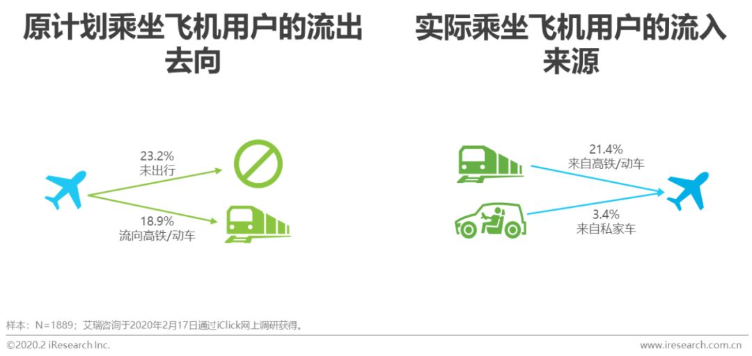 2020年春節(jié)往返交通方式 疫情打亂出行節(jié)奏,遠(yuǎn)途交通行業(yè)面臨用戶留存大考 2020年春節(jié),受疫情影響,出于安全考慮,23.3%用戶取消了原有出行返鄉(xiāng)計(jì)劃。各類主要交通工具中,高鐵/動(dòng)車和飛機(jī)受影響最嚴(yán)重,用戶比例大幅下降;其中,高鐵/動(dòng)車下降11.1%,飛機(jī)下降10.0%。 居民異地出行需求在未來一段時(shí)間將持續(xù)處于低谷,遠(yuǎn)途交通行業(yè)不僅面臨著各交通工具之間的替代性競(jìng)爭(zhēng),更面臨著嚴(yán)峻的用戶留存考驗(yàn),航空業(yè)眾多公司或面臨新一輪洗牌。
