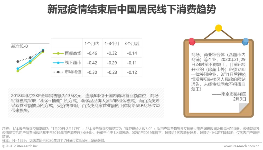 百貨商場(chǎng)&線下超市 疫情使百貨行業(yè)低迷,消費(fèi)預(yù)期低于超市及市場(chǎng)整體 疫情爆發(fā)以來,全國(guó)各地大量百貨商場(chǎng)陸續(xù)進(jìn)入歇業(yè)狀態(tài),仍開業(yè)的部分門店也均調(diào)整營(yíng)業(yè)時(shí)間,門可羅雀;商場(chǎng)及商戶均承受著巨大的經(jīng)濟(jì)損失。受網(wǎng)購(gòu)沖擊,本身已處于陣痛期的百貨行業(yè),在疫情之下更加雪上加霜。百貨商場(chǎng)的消費(fèi)趨勢(shì)低于市場(chǎng)整體,也低于線下超市。 此外,電商行業(yè)基本發(fā)展成熟,巨頭虹吸效應(yīng)明顯,傳統(tǒng)百貨缺乏電商人才和財(cái)力儲(chǔ)備,想要進(jìn)行線上化轉(zhuǎn)型非常困難。但超市業(yè)態(tài)相對(duì)較輕,具備一定不可替代性,且已有一些獨(dú)立線上化或與生鮮平臺(tái)合作進(jìn)行線上化轉(zhuǎn)型的成功案例。