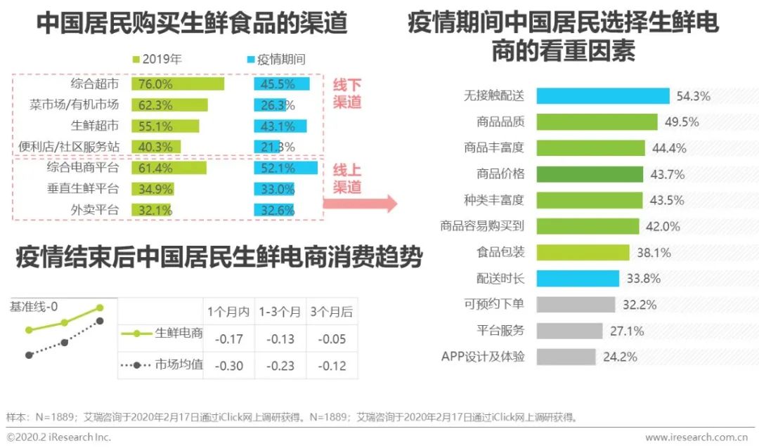 生鮮電商 無接觸配送是首要吸引點(diǎn),商品品質(zhì)和SKU覆蓋是運(yùn)營(yíng)方向 疫情對(duì)于用戶選擇線上生鮮平臺(tái)的影響相對(duì)較小,并且隨著線下渠道的使用率降低,綜合電商平臺(tái)成為生鮮購(gòu)買使用率最高的渠道;而生鮮電商未來一段時(shí)間的消費(fèi)趨勢(shì)將高于整體市場(chǎng)整體。 在選擇生鮮電商時(shí),基于疫情期間而提供的特殊服務(wù)——無接觸配送成為用戶首要看重因素,此外,相對(duì)價(jià)格,保障商品品質(zhì)和提高SKU覆蓋是更為有效的用戶運(yùn)營(yíng)方向。