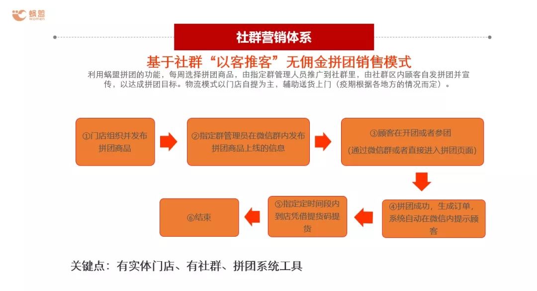 需要向社區(qū)電商學(xué)習(xí),核心模式是:社區(qū)+社群,操作模式是團(tuán)長+合伙人;每個(gè)門店都有忠實(shí)粉絲,能達(dá)成價(jià)值觀的一致,極容易成為團(tuán)長/合伙人;