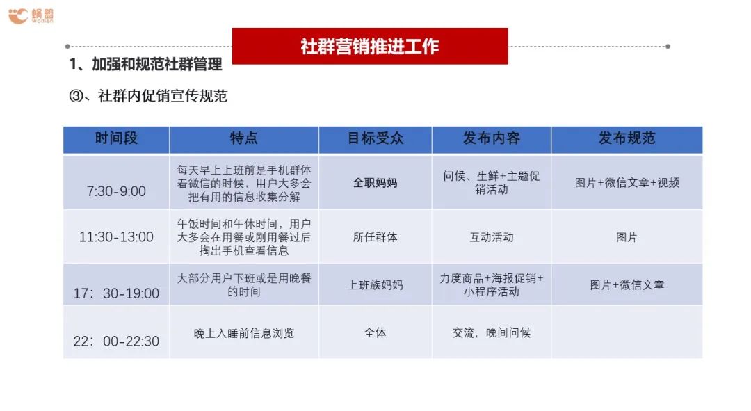 日常內(nèi)容的宣傳與推送,可以按照下圖的表格內(nèi)容進(jìn)行推送。