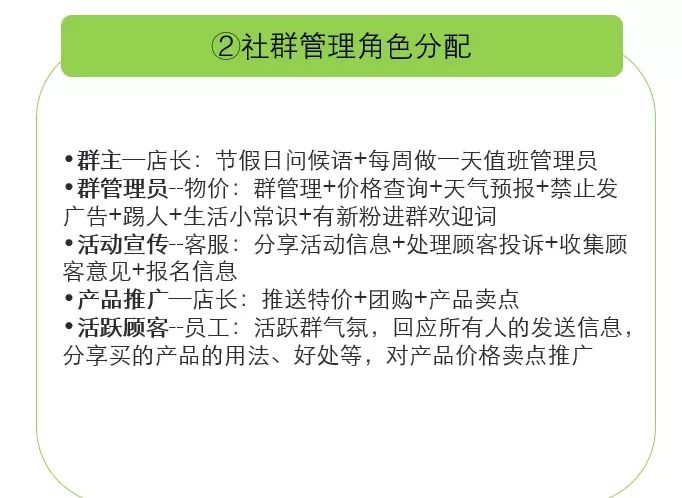 社群運(yùn)營的成功依托以下三個(gè)步驟:1.加強(qiáng)和規(guī)范社群管理:(1)對群員有標(biāo)準(zhǔn)化的命名方式(2)有真實(shí)的管理員(3)有消禁的措施;其中社群的命名方法多種多樣。2.社群的管理分配,此處敲重點(diǎn)!需要合理分配社群職能,下圖中的角色都是必需的,氛圍人員都是需要的。