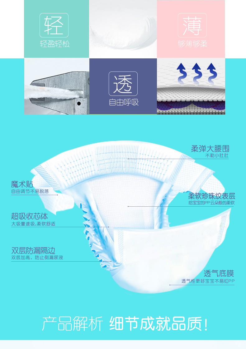 而且,愛佰蓓這么做,也并不是為了偷工減料。愛佰蓓去除了多余的部分,只為將精力聚焦于寶寶最真切的需要,讓尿褲更薄、更軟、更能吸,真正將這些對寶寶有益的指標做到極致。 |