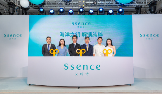當(dāng)天,Ssence全新品牌發(fā)布會現(xiàn)場被打造成蔚藍(lán)世界。以“海洋之鑰,解鎖純粹”為主題,品牌精簡、純粹的格調(diào)在現(xiàn)場得以體現(xiàn)。