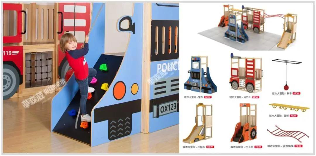 目前,華森葳還推出感統(tǒng)體能教室,為幼兒提供了專用室內(nèi)體能的鍛煉場地,讓孩子的體能素質(zhì)鍛煉不再受天氣氣候等客觀因素的限制。這套感統(tǒng)教室由城市大冒險、攀爬墻與迷宮三款感統(tǒng)家具構(gòu)成,將游樂場融入幼兒園室內(nèi)場所,為孩子們帶來感覺統(tǒng)合的新體驗。 在城市大冒險中,有造型獨特的巴士、消防車、警車感統(tǒng)器、秋千、波浪爬梯等等,充分滿足孩子的感官體驗,在攀爬玩耍中激發(fā)孩子探索的好奇心。城市攀爬墻,有恐龍、汽車、建筑、太空火箭等12種主題可供選擇,不僅為孩子營造了豐富的游戲氛圍,也讓幼兒的攀爬活動更具趣味性。