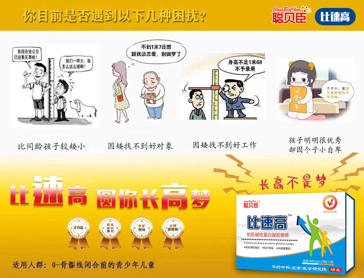 并且,6歲之前的小朋友,尤其是0-3歲之間是小孩子的骨骼成長發(fā)育關(guān)鍵期,除了要有適量的運(yùn)動(dòng),還要注意補(bǔ)充好鈣鐵鋅和微量元素的攝入。聰貝臣比速高初乳堿性蛋白凝膠糖果深度挖掘孩子成長潛力,激發(fā)源動(dòng)力,促進(jìn)孩子自然長高。