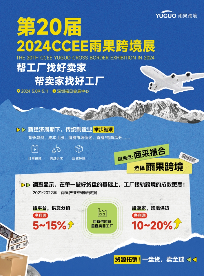 2024中國·深圳跨境電商展會_汽配五金_消費電子_燈飾照明 2024第二十屆深圳CCEE雨果跨境展覽會 時間:2024年5月9-11日 地點:深圳會展中心(福田) 報名咨詢:王經(jīng)理135-6458-6038(兼微信) 承辦單位:雨果網(wǎng)(深圳)跨境電商有限公司 品牌展商1000+ 展會面積30000+ 參展賣家30000+