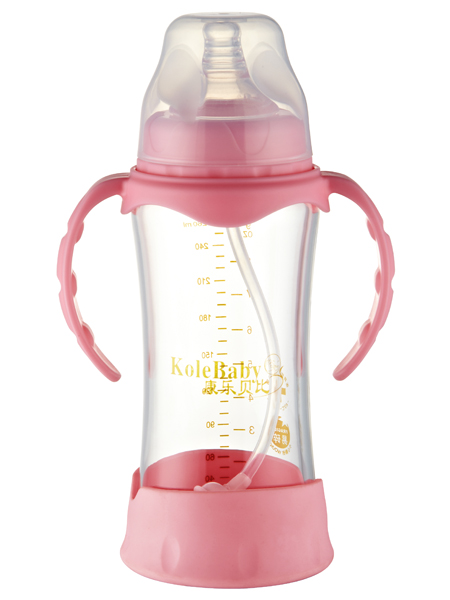康樂貝比防爆晶鉆高硼硅玻璃寬口弧形自動奶瓶260ML