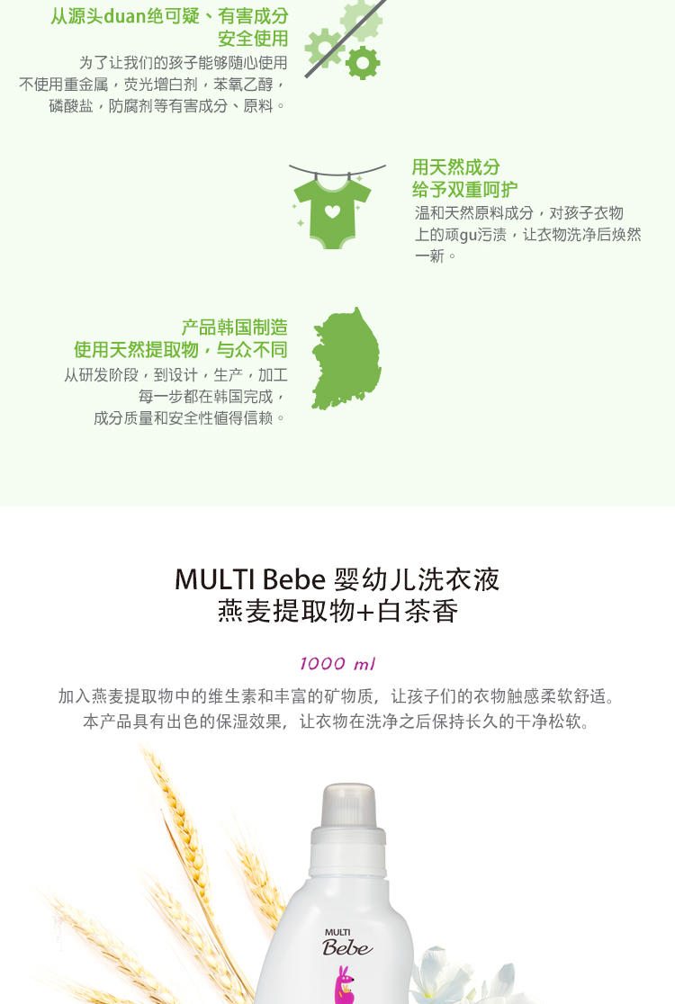 MULTIBebe莫托波比韓國原裝進(jìn)口嬰幼兒洗衣液1000ml