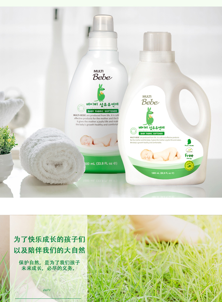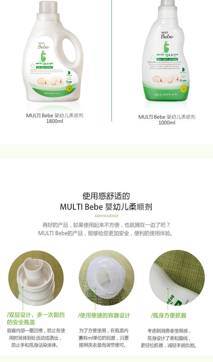 MULTIBebe莫托波比韓國(guó)原裝進(jìn)口嬰幼兒衣物柔順劑1000ml