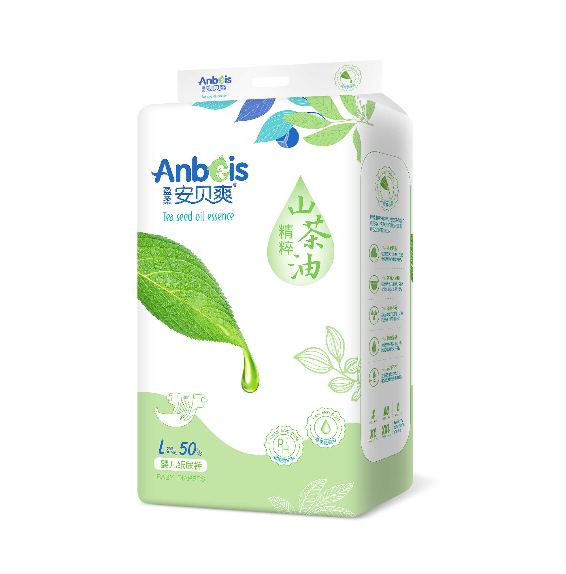 安貝爽,泉州市利友衛(wèi)生用品有限公司旗下主打紙尿褲品牌之一,深耕嬰兒紙尿用品多年,眾多母嬰店、連鎖百貨都已鋪上安貝爽的身影,旗下紙尿用品集柔軟、舒適、透氣、防漏等優(yōu)勢于一體,更薄更貼身,給予貼心守護,上市以來備受認可,已成為更多有寶貝家庭的優(yōu)選紙尿用品品牌! 安貝爽盈柔山茶油精粹紙尿褲,精選優(yōu)質柔軟面料,更干爽更透氣,超強芯體結構,吸尿量更大,吸收速度快,不反滲,不起坨,不斷層,可吸收整晚尿液,一片到天明,給寶寶整晚金質睡眠!而且透氣性也非常好,瞬間排走尿濕,小屁屁更干爽更柔滑,遠離紅屁屁現(xiàn)象,大環(huán)腰小內褲形狀設計,寶寶自由活動無拘束,媽媽可以放心為寶寶使用。