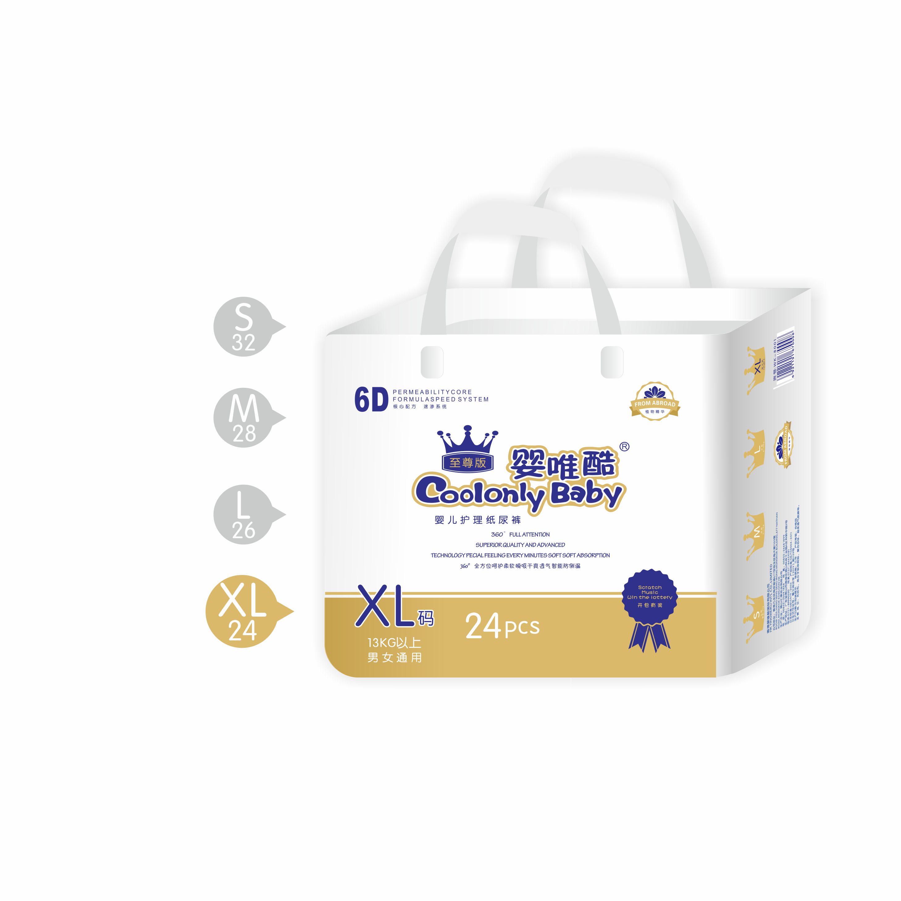 嬰唯酷紙尿褲,是一款根據(jù)人體工程學而制定6D紙尿褲,以高標準嚴苛質(zhì)量關,并且采用第三代復合全芯體,超薄1mm,進口高科技吸收層,海量吸收寶寶尿液,強力鎖濕,不起坨不斷層不反滲,健康環(huán)保,呵護成長快樂。目前嬰唯酷紙尿褲面向全國火爆招商,歡迎廣大朋友前來咨詢交流,洽談合作,共謀發(fā)展!