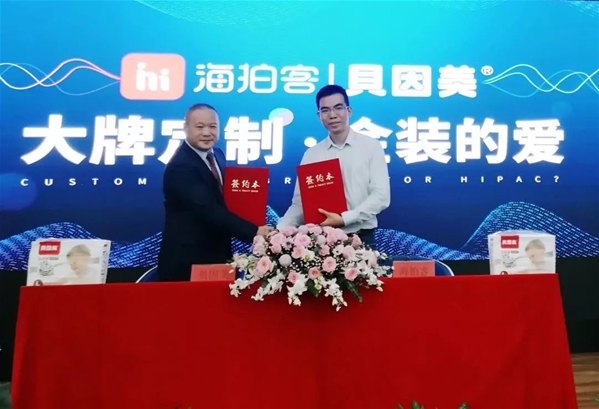 貝因美用品業(yè)務(wù)總經(jīng)理徐達(dá)新和海拍客CEO趙晨簽署合作協(xié)議 貝因美推出海拍客定制款 金裝的愛給你最好的呵護(hù) 早在今年4月,貝因美就已經(jīng)和海拍客達(dá)成戰(zhàn)略合作,成為貝因美童享奶粉全國的獨(dú)家代理,一起共同賦能線下母嬰市場,聯(lián)手挖掘母嬰市場新藍(lán)海。此次戰(zhàn)略合作升級,貝因美聯(lián)合海拍客定制款金裝愛嬰兒紙尿褲的推出,更是表示雙方的合作更加深入,而牽手海拍客,恰恰也能幫助貝因美更快更好打開線下市場。“一直以來,貝因美都在尋找途徑,希望能夠讓貝因美的產(chǎn)品滲透到三到六線母嬰線下市場,遇到了海拍客之后,我們覺得找到了新的機(jī)會,所以這次戰(zhàn)略合作升級——海拍客定制款金裝愛嬰兒紙尿褲的推出,相信對于雙方來說都是新的機(jī)會,也會給母嬰市場帶來新的機(jī)會。” 貝因美用品業(yè)務(wù)總經(jīng)理徐達(dá)新說道。