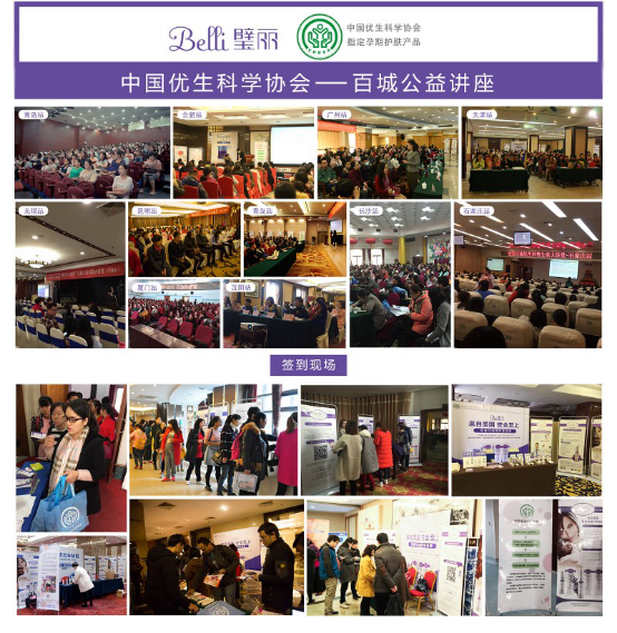Belli的產(chǎn)品功效都有著強(qiáng)大的研究和臨床試驗(yàn)報(bào)告支持。比如Belli的明星產(chǎn)品Belli舒紋修護(hù)霜含有兩大專利成分Darutoside和Registril,臨床證明可以有效淡化妊娠紋的長度和深度。而Belli粉刺解決方案的兩大明星產(chǎn)品中,Belli祛痘調(diào)理精華含有的成分比如膠態(tài)硫、茶樹精油等都是有效而又安全的抗粉刺成分,而Belli清透舒緩潔面乳含有的乳酸成分,擁有強(qiáng)大的清潔肌膚,抑菌消炎的功效,而又本身就在人體內(nèi)存在,所以是非常安全的。 熱心公益事業(yè),助力國家優(yōu)生優(yōu)育 自2015年Belli璧麗進(jìn)入中國以來,一直熱心公益事業(yè),Belli璧麗攜手中國科學(xué)優(yōu)生協(xié)會(huì)傾力開展“預(yù)防出生缺陷——百城優(yōu)生科普大講堂”活動(dòng),不斷為中國媽媽科普專業(yè)的孕期護(hù)膚和預(yù)防新生兒出生缺陷的相關(guān)知識(shí)。